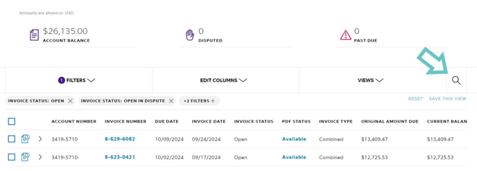 3. Using the search option (Magnifying Glass Icon), Put in the invoice number.