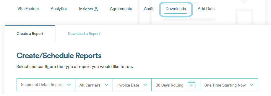 You can run nine types of reports. You can customize the report by changing the report's carrier , date range, and frequency (schedule).